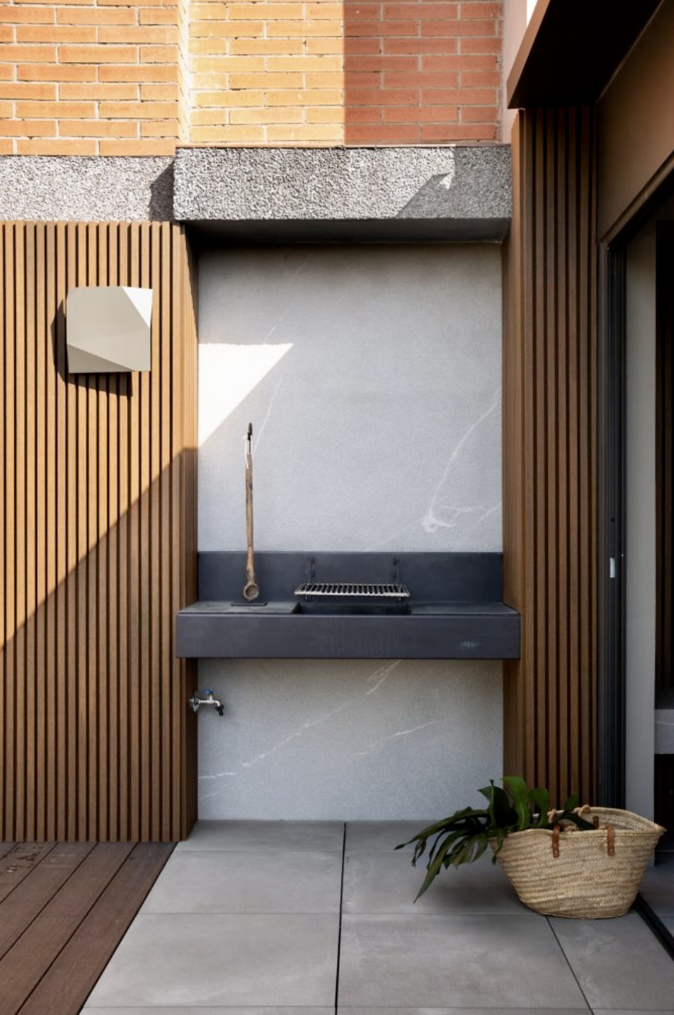 L’espai s’organitza de manera fluida, connectant l’àrea exterior oberta amb una zona protegida sota coberta, que integra amb naturalitat una cuina exterior minimalista i altres usos d’estada.