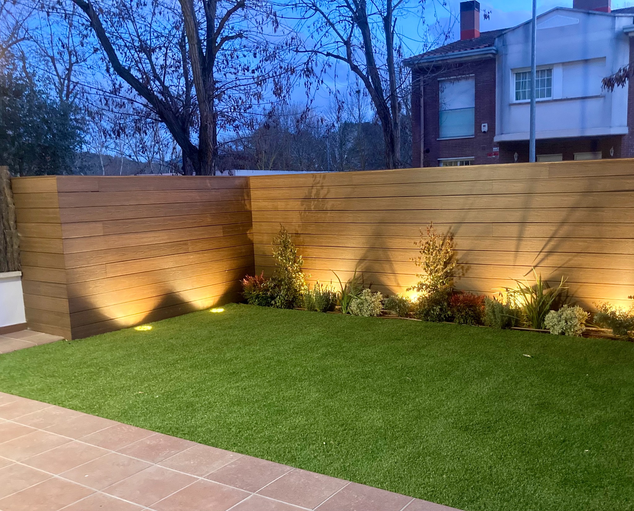 Aquesta intervenció integral d’exterior transforma un jardí domèstic en un escenari de tranquil·litat i equilibri. La fusta tecnològica de to càlid actua com a nexe estètic i estructural, delimitant visualment l’espai i aportant continuïtat a les diferents àrees. L’acurat disseny del parterre combina volum, textura i color per mantenir interès tot l’any, mentre que la il·luminació nocturna subratlla la vegetació i enriqueix l’experiència sensorial sense trencar la serenor de l’espai. Tot plegat, una mostra de com la simplicitat ben dissenyada pot assolir una bellesa atemporal.
